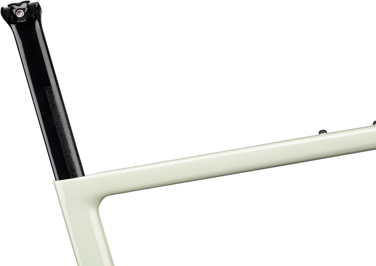 Le kit de cadre Exploro RaceMax de 3T est la base d’un vélo de gravel en carbone. Selon l’équipement, tu peux construire un vélo tout-terrain rapide ou une machine de gravel avec des pneus très larges. Le cadre aérodynamique, possède un tube diagonal particulièrement solide et un tube de direction très étroit. Dans ce tube de direction, cependant, il y a une solide tige de fourche de 1,5″ , qui confère au vélo douceur et stabilité. Il est également important de disposer d’un dégagement suffisant pour les pneus. Il est rendu possible au niveau de la fourche entre autres par une couronne de fourche minimaliste. Le cadre lui-même comporte des bases abaissées des deux côtés, ce qui permet également un dégagement des pneus plus important.
