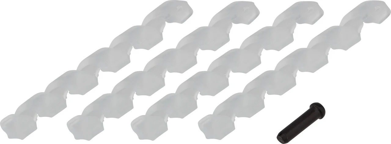 Informations techniques :Matériau :matériau synthétiqueCaractéristiques :Orange Line (OL) : performances de freinage/de commutation maximales avec un minimum de frictionprotège le cadre et les gaines extérieures de l’abrasioninstallation toute simple grâce à la forme en spiraleCompatibilité :gaines de câble de 4 – 5 mm de diamètreNuméros du fabricant :noir:407007transparent:407008Contenu :4 x spirale de protection de cadre capgo OL, pour les gaines de 4 – 5 mm