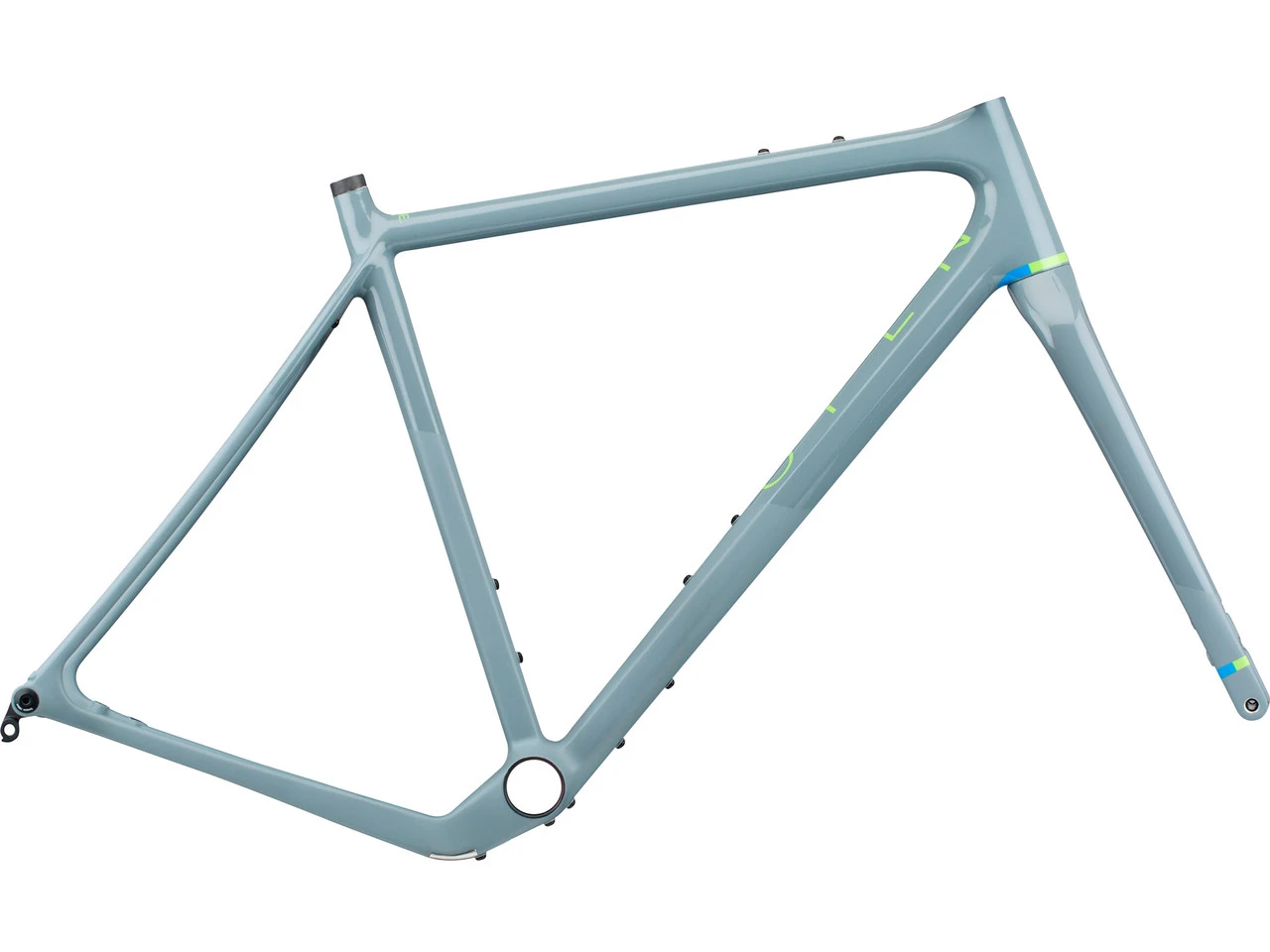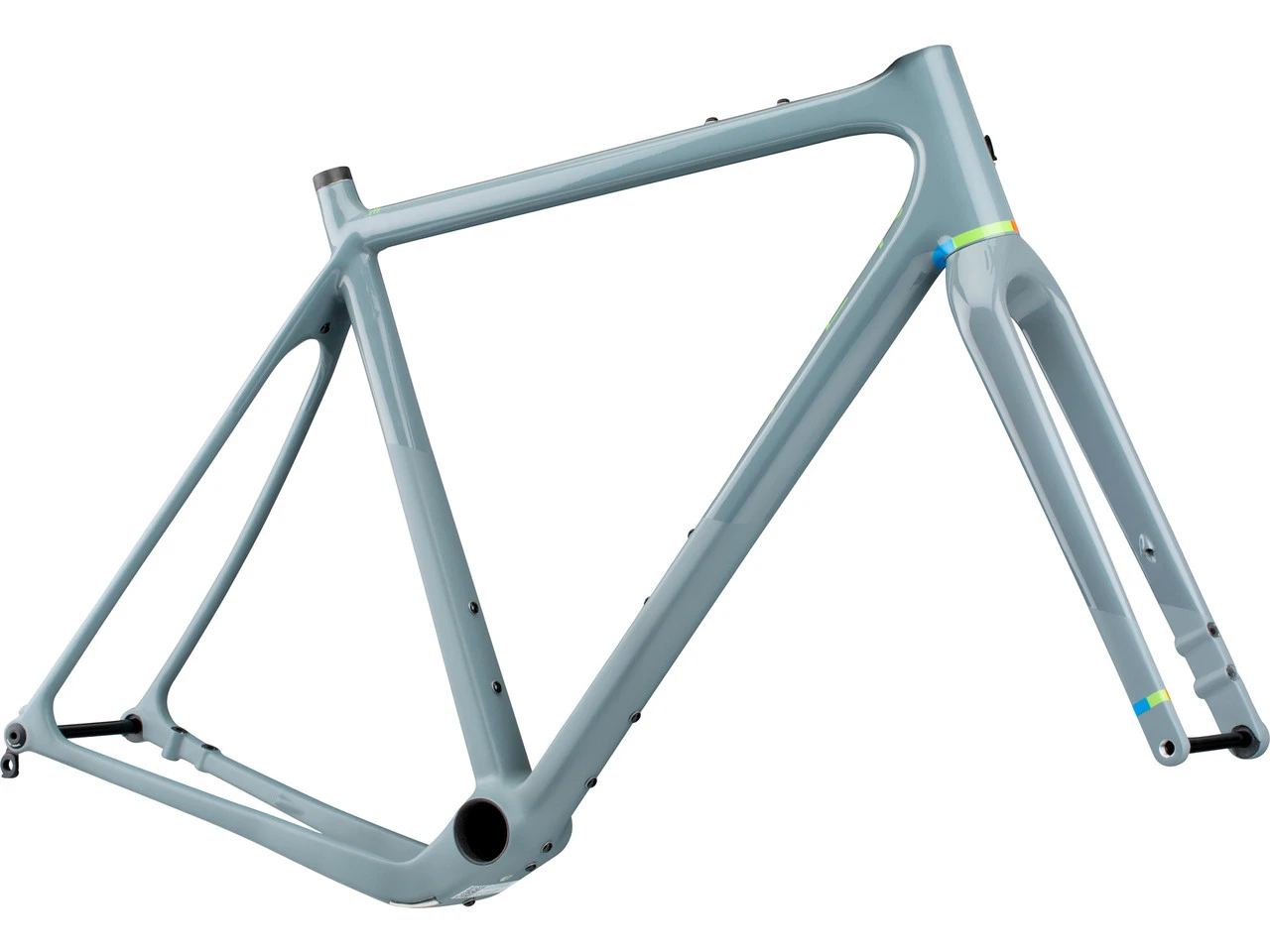Spécifications :Utilisation :GravelTaille de roue:27,5″ (650B), 28″Tailles de cadre:XS, S, M, L, XLMatériau du cadre:carboneMatériau de la fourche:carboneInformations techniques – cadre :Largeur roue arrière:142 mmStandard d’axe:axe traversant de 12 mmTube de selle (Ø):27,2 mmJeu de direction:IS42/28.6 – IS52/40 (intégré)Standard de boîtier de pédalier:BB386 EvoLargeur du logement:86 mmFixation des freins:Flat MountFixation dérailleur avant:pas de fixation de dérailleur avant possiblePose des câbles:interne mécanique / électriqueFixation du porte-bidon:4Information techniques – fourche :Tige de fourche:1 1/8″ – 1,5″ taperedSystème d’axe:axe traversant de 12 x 100 mmFixation des freins:Flat MountDéport:50 mmHauteur:395 mmMatériau du tube de fourche:carboneMatériau des bras de fourche:carboneAutorisations :Taille du disque de frein:uniquement 160 mmTaille max. du pneu:27,5 x 2,4″ , 46-622 (700x46C)Nombre de plateaux:1 vitesseTaille des plateaux:1 vitesse 46 dents, 1 vitesse 42 dents (SRAM)Caractéristiques :cadre de vélo et fourche en carbone léger pour en faire un vélo de gravel avec des pneus largesbases doublement abaissées pour un dégagement des pneus allant jusqu’à 2,4 poucespose des câbles complètement internequatre possibilité d’y installer des porte-bidons et d’autres accessoiresflexibilité dans la taille de roueGéométrie :XS :