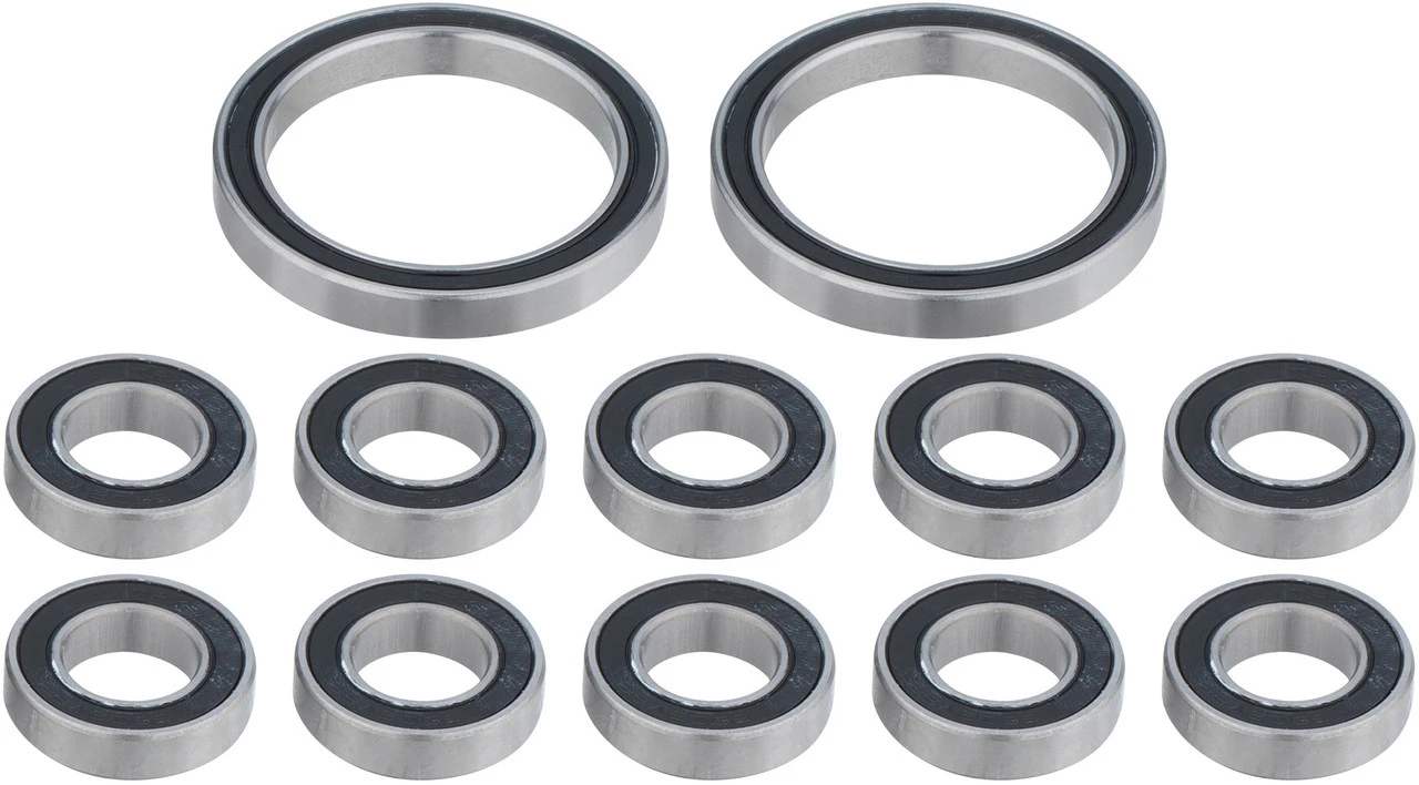 Avec le kit de roulements de RAAW Mountain Bikes, tu obtiens d’un seul coup tous les roulements à billes nécessaires pour ton vélo. Deux roulements à billes 6808-2RS sont utilisés sur l’axe principal et dix roulements à billes 6902V-2RS sont utilisés sur les autres points de pivot.