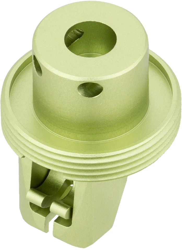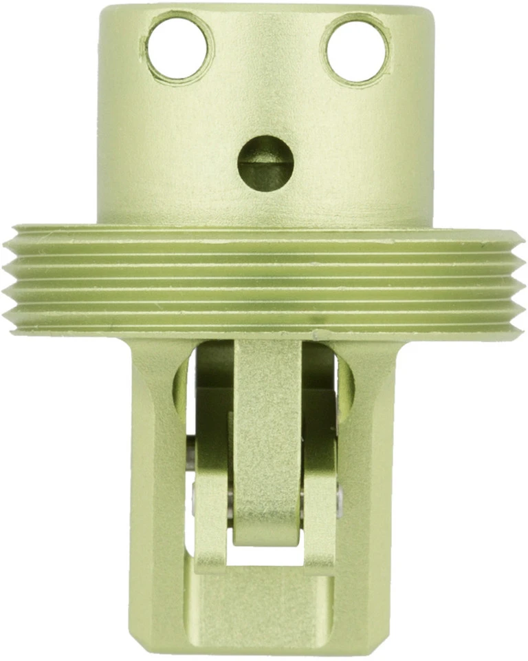 Le Dropper Post Actuator V2.1 de OneUp Components est une pièce de rechange originale pour les tiges de selle télescopiques Dropper Post V2 Vario. Contrairement aux autres versions, la version V2.1 est également compatible avec les vélos Santa Cruz équipés d’un amortisseur VPP Lower Link. Ainsi, en cas de panne de l’ajusteur, tu peux rapidement restaurer la fonctionnalité du Dropper Post. La coloration vert métallique de l’actionneur OneUp est caractéristique.