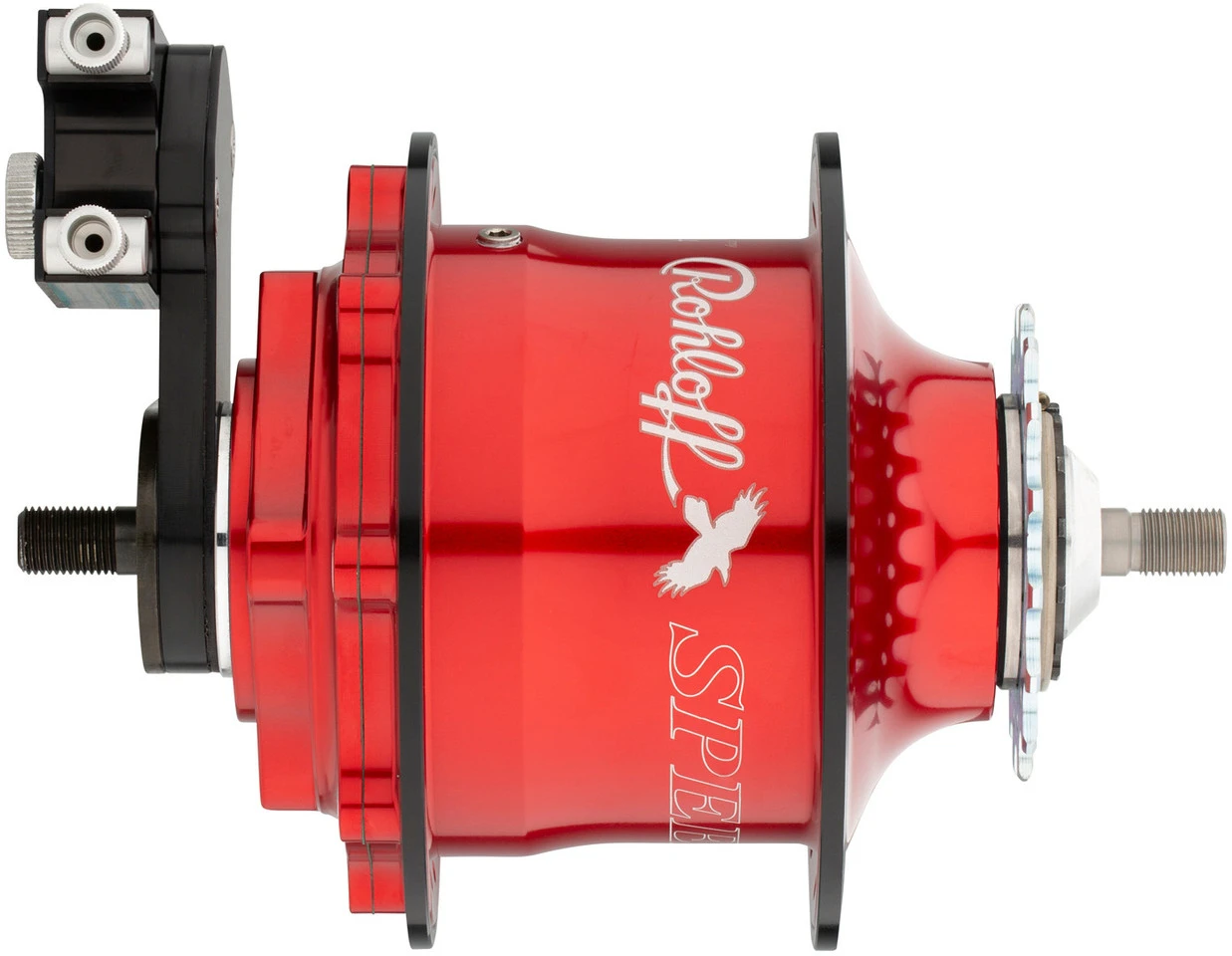 Spécifications :Série:Speedhub 500/14Utilisation :Touring/Trekking, CityVitesses:14Système de frein:freins sur jante ou à disqueSystème d’axe:axe à visser de 10 mm (TS = axe à visser Touring)Largeur :135 mmNombre de trous de rayon:32 trous, 36 trousInformations techniques :Gamme de vitesses:526 %Matériau :aluminium, acierLongueur de l’axe :171 mmTaille de rayon:2,7 mmCercle de trous:100 mmLargeur de la bride:3,2 mmÉcart de bride:58 mm (29 mm/29 mm)Décalage:0 mmCaractéristiques :extrêmement robuste et nécessitant peu d’entretienfabrication parfaite (99 % Made in Germany)passage des vitesses en douceur (13,6 %), même à l’arrêt, avec le levier de vitesses rotatifefficacité de 95 à 99 %, 14 vitesses effectives, pas de chevauchementscompatible avec les chaînes de transmission de 1/2″ x 3/32ligne de chaîne de 57 mmcompatible avec la transmission à courroie Gates Carbon Driveremplissage d’huile de 25 ml maximumcouple d’entrée maximal : 130 Nmla livraison comprend un pignon enfichable à 16 dents (13-19 dents et 21 dents disponibles en option, pignon à visser uniquement dans la limite des stocks disponibles)rapport de transmission le plus bas autorisé pour les cyclistes solitaires jusqu’à 100 kg = 1,9 (40/21, 36/19, 34/18, 32/17, 30/16, 28/15, 28/14, 26/13)rapport de transmission le plus bas autorisé pour les cyclistes de plus de 100 kg = 2,5 (53/21, 48/19, 45/18, 42/17, 40/16, 38/15, 36/14, 34/13)Versions :Type 1 : TS
