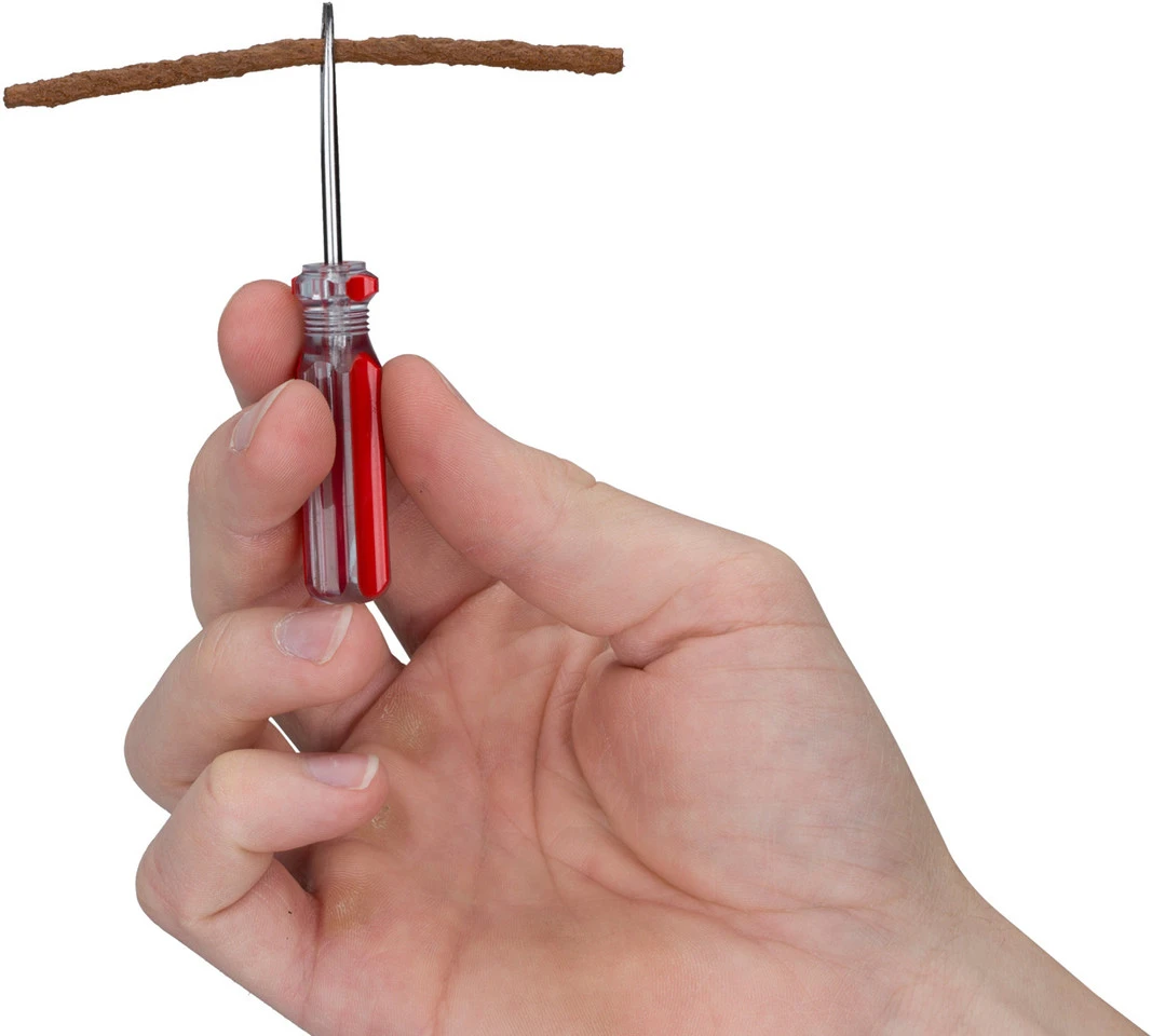 5 x rustines pour pneus tubeless Flicken 3,5 mm x 100 mm5 x rustines pour pneus tubeless Flicken 1,5 mm x 50 mm1 x outil d’insertion1 x outil de nettoyage