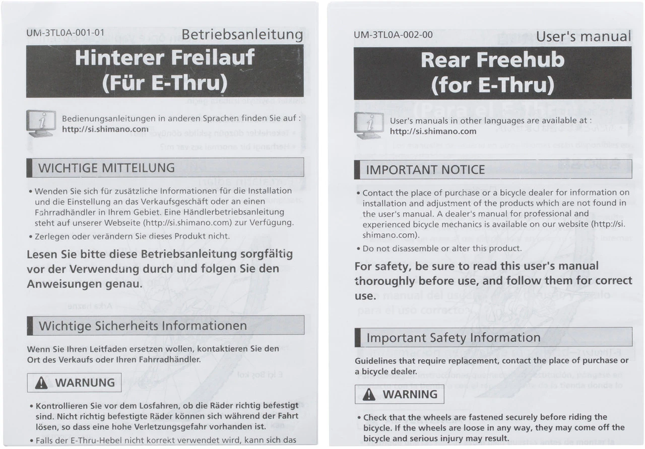 E-Thru est un système d’axe traversant sans outil de Shimano qui optimise le rapport rigidité/poids et permet une manipulation facile grâce à son mécanisme de came interne fiable. Il se caractérise par une grande résistance à la torsion et permet ainsi de prendre des virages à grande vitesse. Les moyeux et les axes traversants E-Thru sont disponibles dans les largeurs correspondantes pour l’avant et l’arrière.