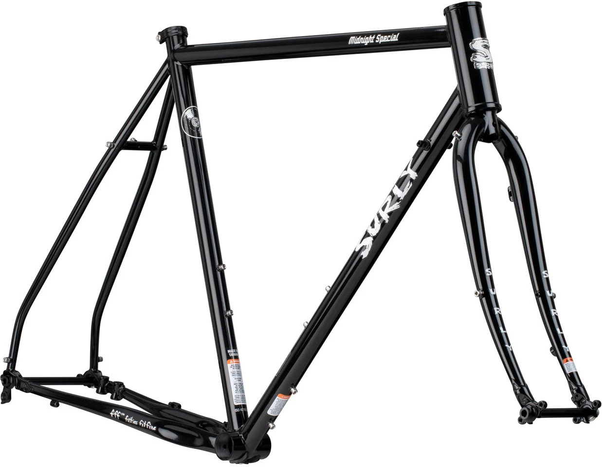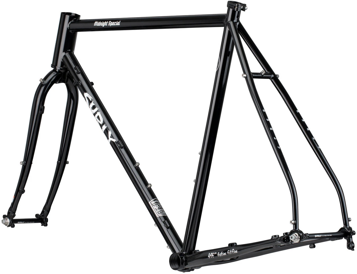 Longueur du tube de selle:640 mmLongueur effective du tube supérieur:625 mmLongueur du tube de direction:200 mmLongueur des bases:425 mmEmpattement:1050 mmAbaissement du pédalier:65 mmReach:423 mmStack:641 mmAngle du tube de selle:72,5°Angle du tube de direction:74°Hauteur de dépassement:895 mmTaille recommandée:193 – 203 cmContenu :1 x cadre Surly MidNight Special1 x fourche Surly MidNight Specialsans jeu de direction
