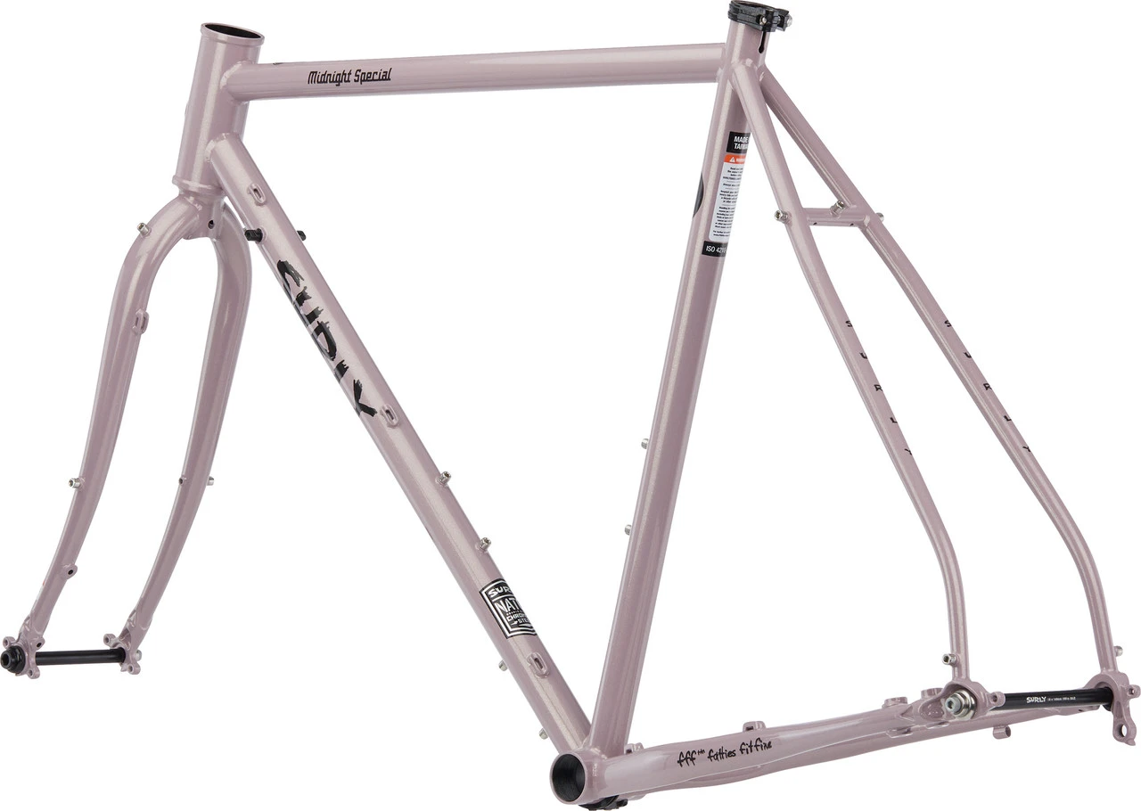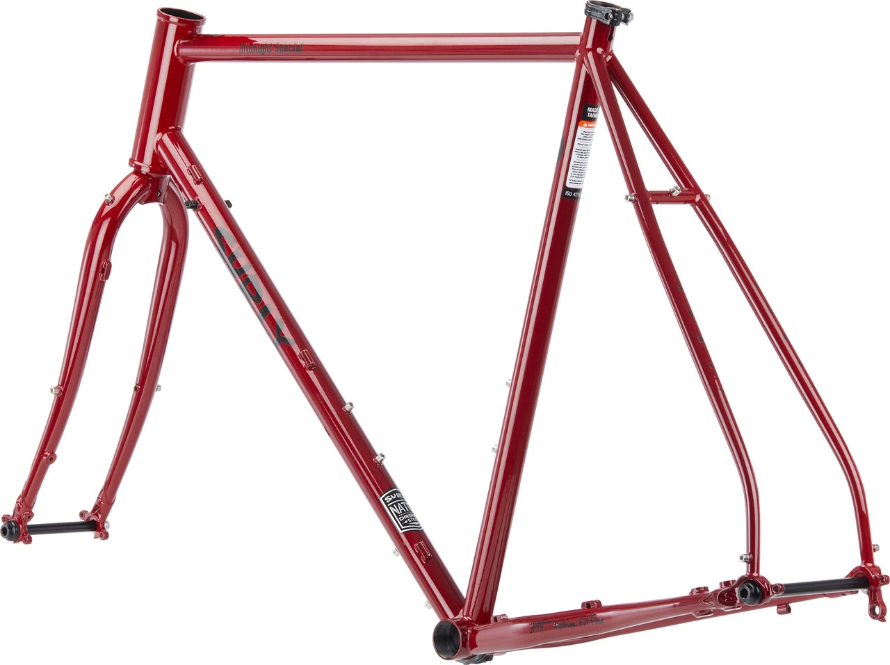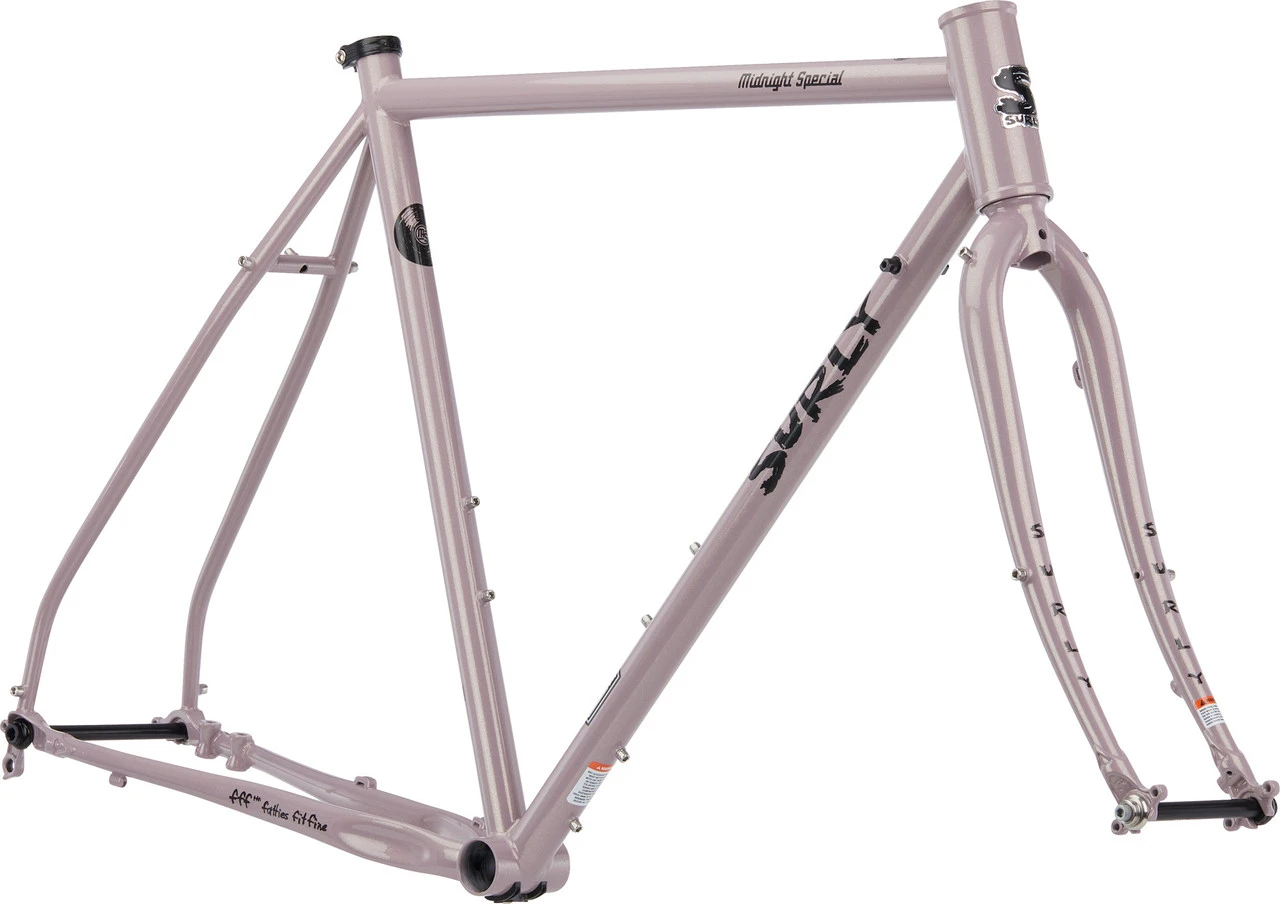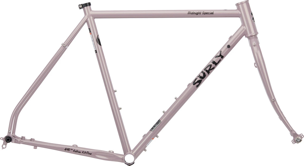 Spécifications :Utilisation :Gravel, Road, Touring/TrekkingTaille de roue:27,5″ (650B), 28″Tailles de cadre:40 cm, 46 cm, 50 cm, 54 cm, 56 cm, 58 cm, 60 cm, 64 cmMatériau du cadre:acier (Surly 4130 CrMo)Matériau de la fourche:acier (Surly 4130 CrMo)Informations techniques :Largeur roue arrière:142 mmStandard d’axe:axe traversant de 12 mmTube de selle (Ø):27,2 mmAttache de selle (Ø):30 mmJeu de direction:ZS44/28,6 – EC44/30 (haut vers bas)Tige de fourche recommandée:1 1/8″Longueur de la fourche:400 mmDéport de la fourche:50 mm (40 cm, 46 cm, 50 cm, 54 cm), 40 mm (56 cm, 58 cm, 60 cm, 64 cm)Standard de boîtier de pédalier:BSA 68Largeur du logement:68 mmFixation des freins:FlatFixation dérailleur avant:High Clamp (collier 28,6 mm)Pose des câbles:externe mécaniqueFixation du porte-bidon:3Information techniques – fourche :Tige de fourche:1 1/8″Système d’axe:axe traversant de 12 mmFixation des freins:FlatDéport:50 mm (40 cm, 46 cm, 50 cm, 54 cm), 40 mm (56 cm, 58 cm, 60 cm, 64 cm)Hauteur:400 mmLargeur :100 mmDiamètre de la couronne de fourche:30 mmMatériau du tube de fourche:acier (Surly 4130 CrMo)Matériau des bras de fourche:acier (Surly 4130 CrMo)Autorisations :Limite de poids:136 kg (poids du cycliste)Taille max. du frein à disque:160 mmTaille max. du pneu:700×42 mm, 27,5×2,35″Nombre de plateaux:1 plateau, 2 plateaux, 3 plateauxTaille du plateau (max.):1 vitesse 44 dents, 2 vitesses 34-50 dents, 3 vitesses 30-39-50 dentsIndex des couleurs :hot mayonnaise:blanc perléIndication du fabricant :Lors du choix de la taille de ton cadre, n’oublie pas que Surly ne mesure pas le tube de selle jusqu’à l’extrémité du tube de selle, comme il est courant chez les autres marques. Les cadres avec entretoisement sur le tube supérieur sont mesurés à partir du milieu du pédalier jusqu’au-dessus de l’entretoisement. Pour les cadres sans entretoisement, Surly mesure du centre du pédalier jusqu’au bord supérieur du tube supérieur.